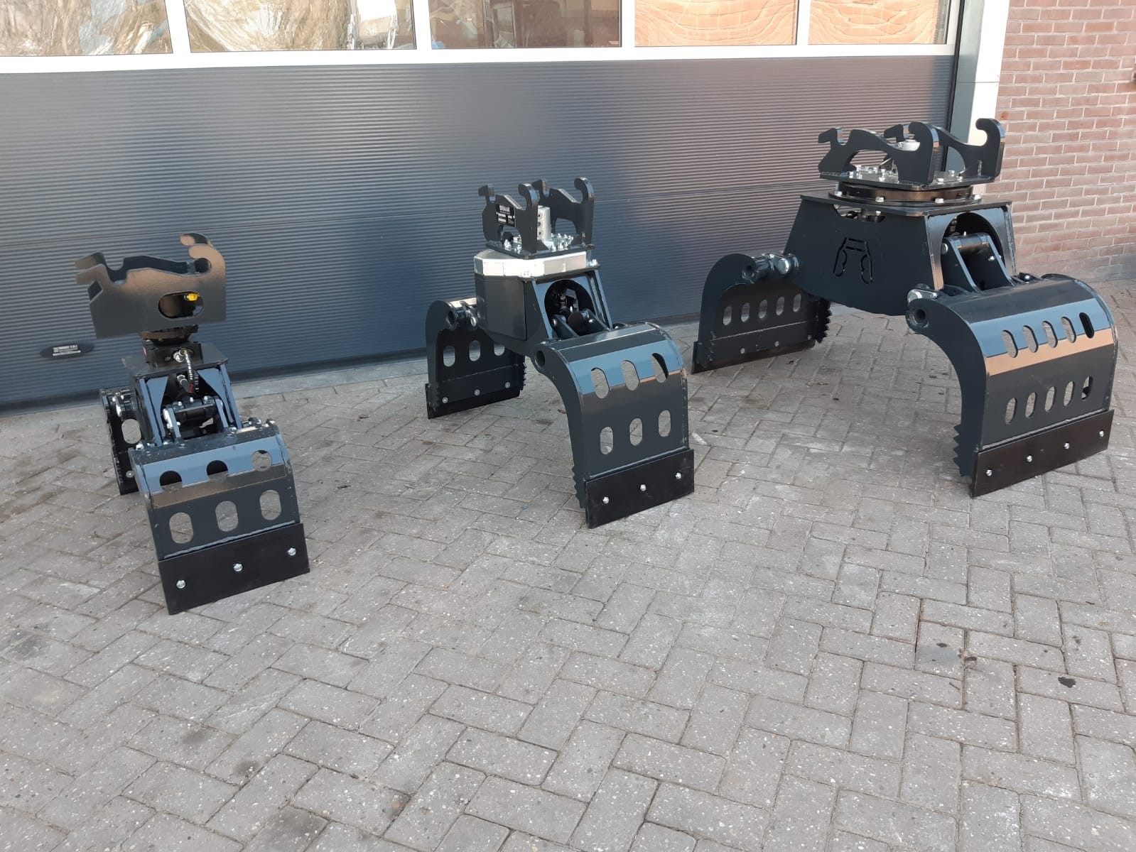 Wij kunnen de grijpers en draaikantelstuk pas maken aan uw machine.
